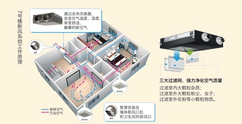 新风系统主机本体的运行噪音在40-50dB(A)之间,但由于系统主机一般安置于非常规生活区域,且空气是通过安装在吊顶内的风管输送到各个房间的,所以在客厅、卧室等常规活动、休息区内,是感觉不到噪音的。