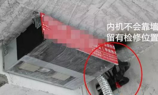 (2)回风:保证回风顺畅,要留有检修位置。在的施工现场,每一台内机,都没有两边直接靠墙,最边上都是管道,这是因为施工的时候留有三十公分检修口,不会为了迎合业主做造型而委屈空调的效果。